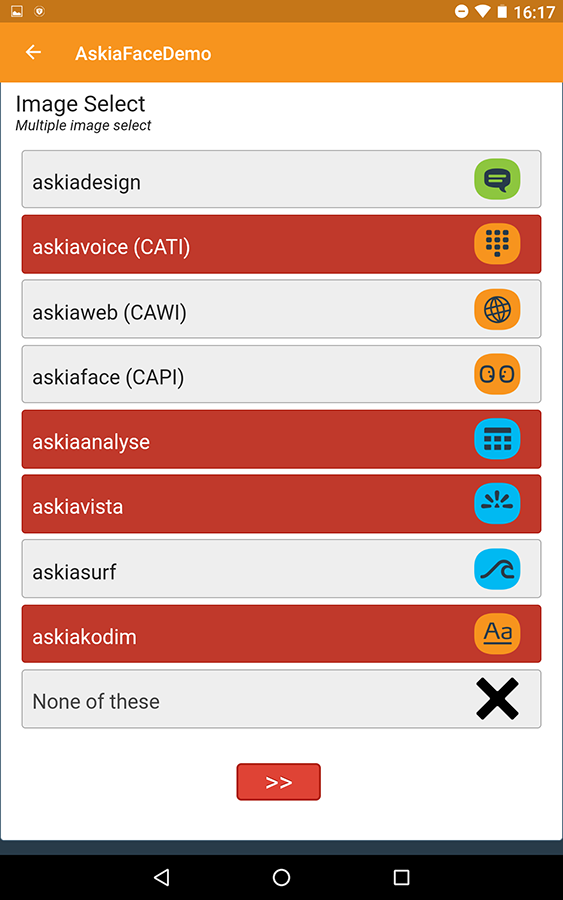 Power: askiaface allows you to include a wide range of survey resources (e.g. images, audio or video) in your fieldwork.