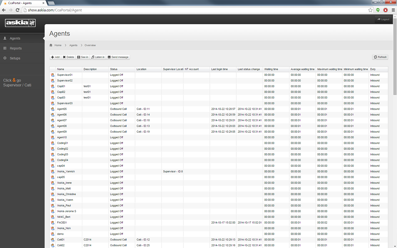 Askiavoice is specifically designed to work with CTArchitect, our dialler solution. Different dialling modes are available, such as Preview, Progressive & Predictive dialling; allowing you to boost your CATI productivity. A whole range of monitoring options are available, such as automated call recording (for open-ended questions), remote listen-in, extended statistics and more.